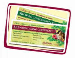 Present $100 in qualified Ward shopping and dining receipts dated December 1-19, 2010 to receive your free gift at the Redemption Counters indicated below. Each $100 in receipts qualifies for one free gift. Limit of one gift per person per designated gift period, while supplies last. Must be 13 years or older. The gratuity amount on the receipt is not applicable. Credit card receipts must accompany detailed receipts. Receipts for car wash, car detailing, and Ward 16 Theatre tickets and concession are not applicable. Ward employees and their immediate families are not eligible for free promotion.