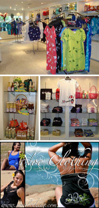 All About Hawaii offers island-inspired apparel for women sizes XS to Plus sizes. M.Mac is available exclusively at the Ward Centre location, as well as Noe Clothing which is usually only found at craft fairs. All About Hawaii also sells bags, baby blankets, locally-made cookies and salad dressing.
