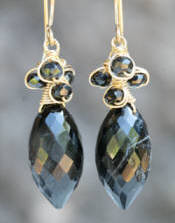 $105     Black Tourmaline, Spinnels, gold-fill earring