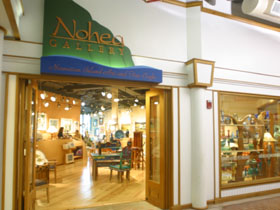 Hawaiian island art and fine crafts. Local and national artists show their best work here! Koa and other Hawaiian woods in boxes, bowls and furniture. Art glass, ceramics, unique jewelry and original art by established and emerging local artists.