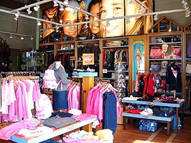 Trendy children's surf shop carrying Quiksilver boys and Roxy girls T-shirts, clothing, and acccessories for ages baby-16 years old, plus surfboards and skateboards.