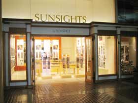 Trendy sunglass boutique that carries hip, stylish shades. Shoppers are encouraged to try on multiple styles.