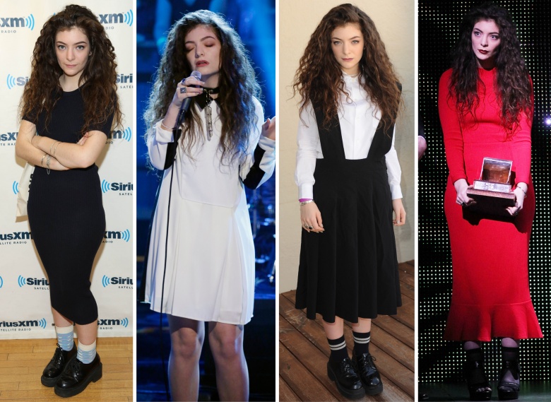 While a pop of color isn’t out of the question, Lorde is most known for transforming basic black. From sleek minimalism to rock ‘n’ roll sex appeal and tomboy chic, this girl keeps it simple while managing to mix it up. This gal also shows us how a signature shade can be achieved by experimenting with textures and soft and hard layers that break up the monotony of the monochrome.